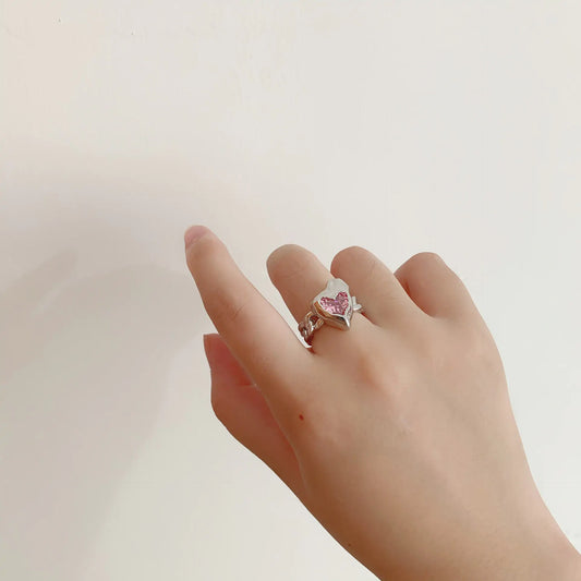 Adjustable Heart Sparkling Ring