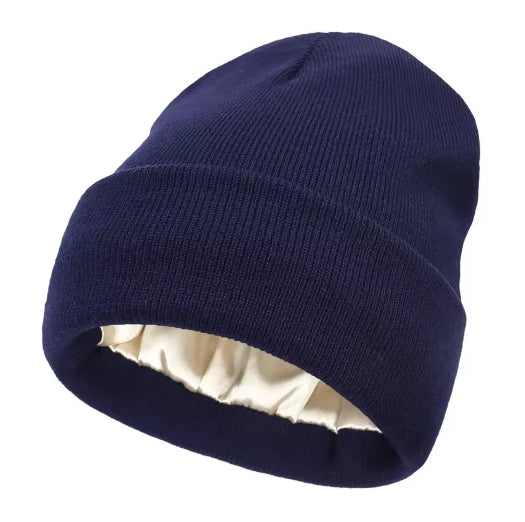 Cozy Satin Lined Knit Hat, Warm and Hair Protective Winter Hat
